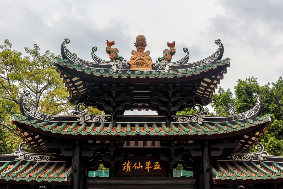 在惠福西路的喧嚣闹市中,有一处绿瓦的古建筑——五仙观。这里被誉为“广州祖庙”,是全国重点文物保护单位,承载着羊城得名的美丽传说。