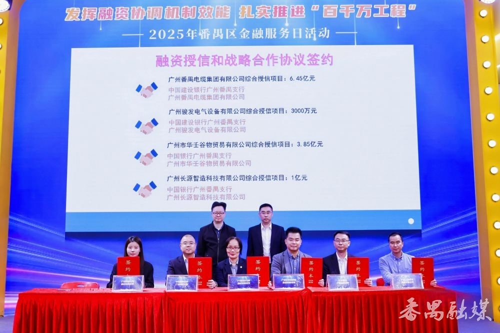 11月13日,“发挥融资协调机制效能 扎实推进‘百千万工程’”——2025年番禺区金融服务日活动在番禺区市桥街华丰汇购物中心举行,各相关单位领导、镇街商会、金融机构和企业代表等参加活动。活动通过融资授信签约、表扬先进典型、金融法规宣传等形式,全面展现番禺区金融业服务实体经济的创新实践与成效。活动由番禺区“百千万工程”指挥部办公室、区发展和改革局指导,区融媒体中心、区工商业联合会、区金融协会主办,区厂商会、区创新科技企业协会协办。