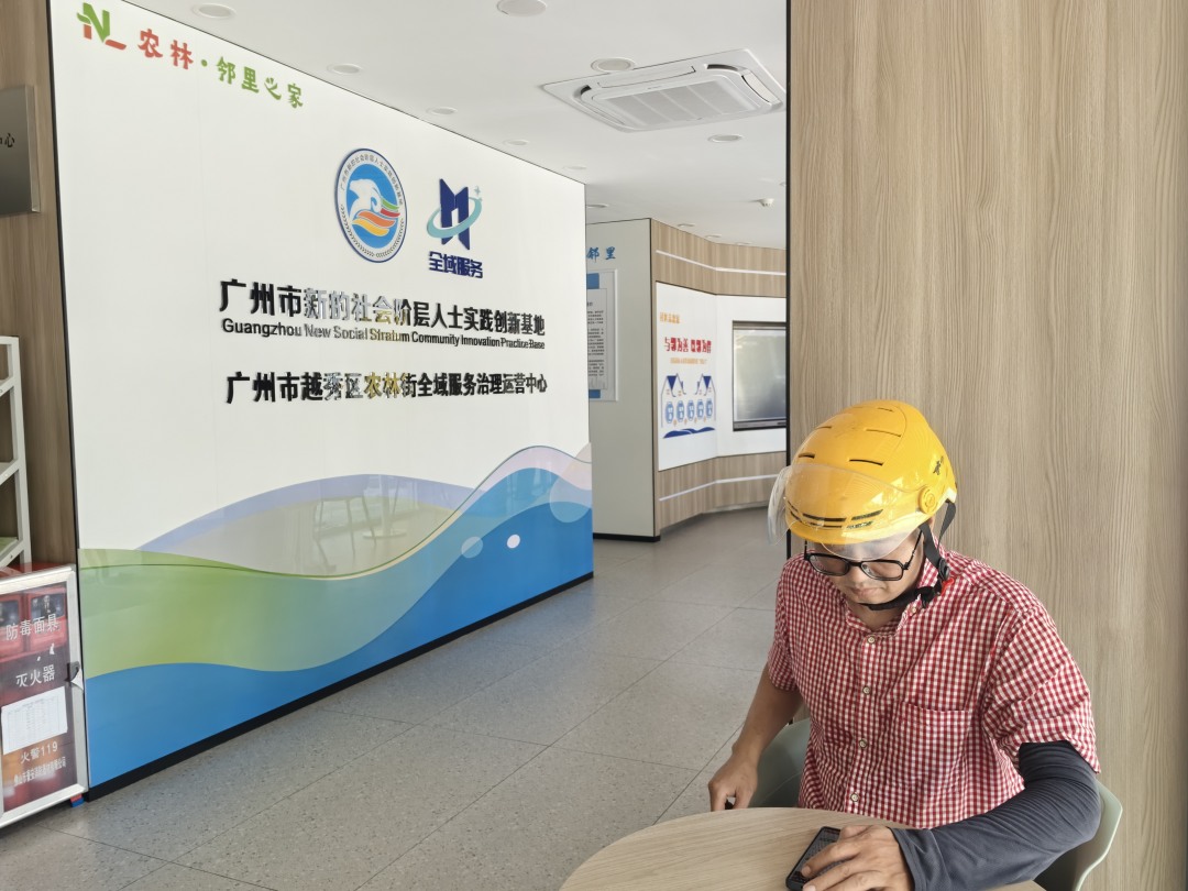 青年骑手在农林街“邻里之家”歇息充电