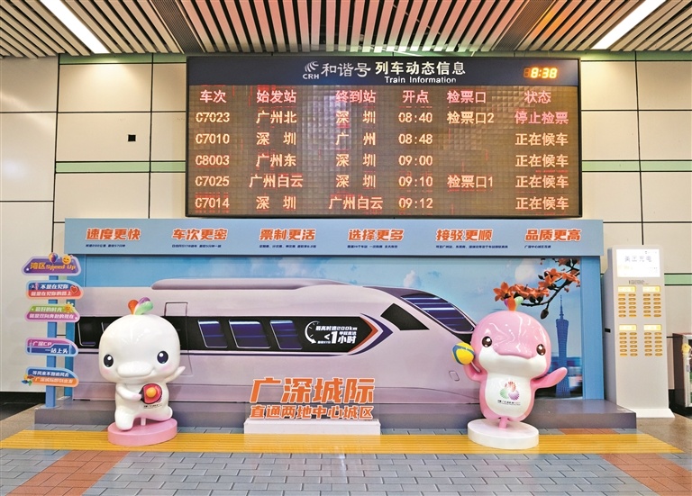 截至今年10月,广州地铁集团运营的城际铁路达420公里,连接广州、佛山、东莞、惠州、肇庆、清远6城,串联10个枢纽,与14条地铁线共17座地铁站便捷换乘,构建起“轨道上的大湾区”核心骨架。