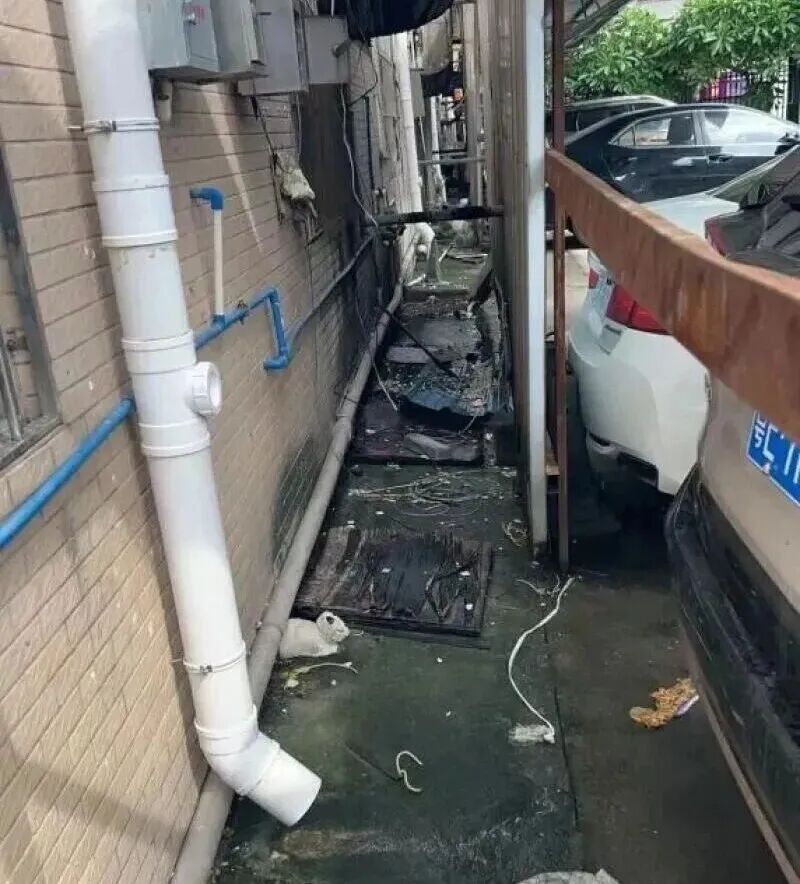 记者了解到,该段水渠位于南村村恒美综合大楼旁的路面地下,因自然老化,上方路面出现破损裂缝,导致泥沙、杂物不断侵入渠内,水渠内部形成了严重的堵塞淤积,长期水流不畅,对周边环境卫生和居民生活造成了严重影响。