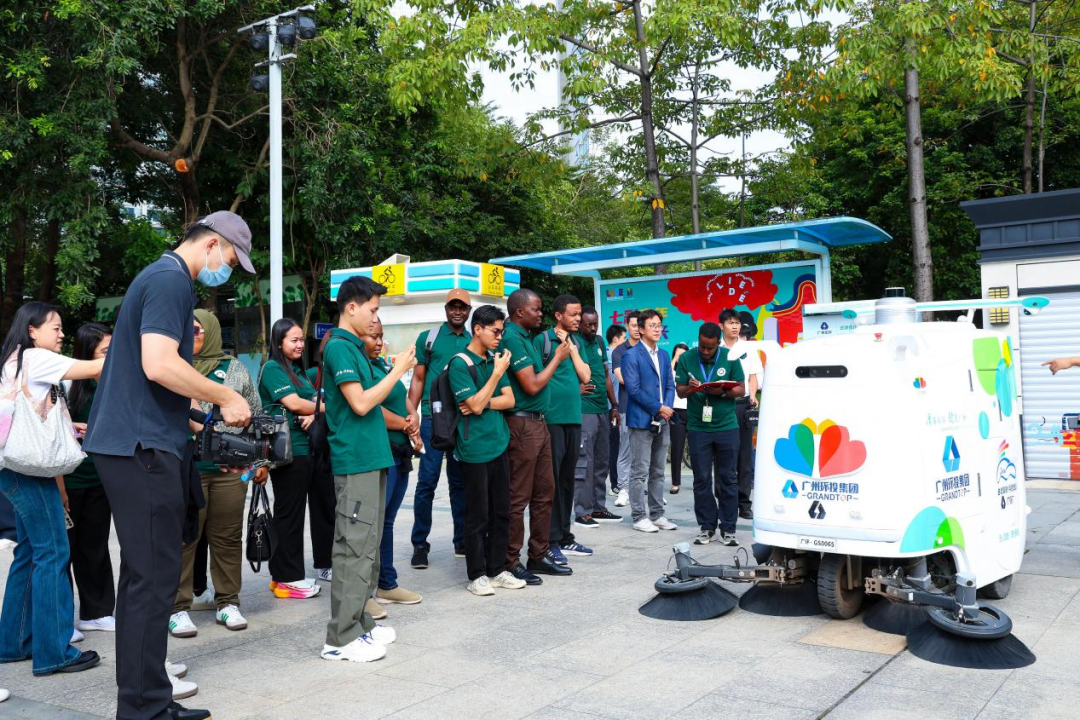 参与者在工作人员讲解下了解GS1无人驾驶清扫车。通讯员供图