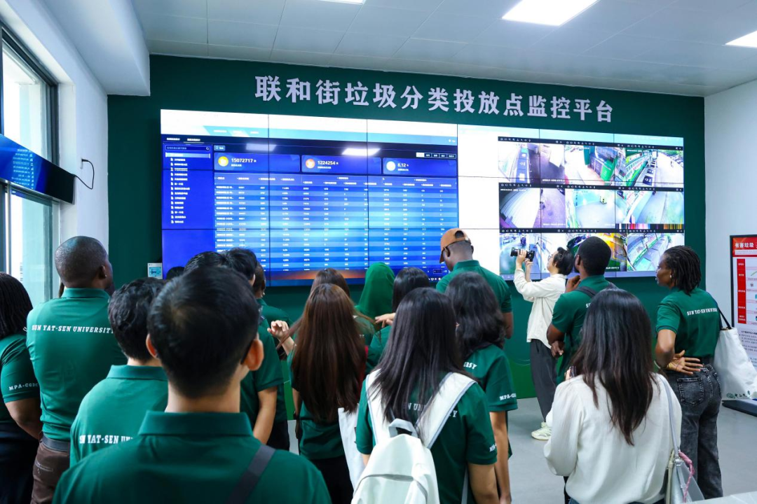 活动最后,参与者来到位于黄埔区联和街的垃圾分类宣教馆。在讲解员的介绍下,大家系统性地认识广州生活垃圾分类的历程、科技应用与末端处理链条,并实地观看联和街的“智慧大脑”——垃圾分类智能监控平台。该平台覆盖全街124个垃圾投放点,利用人工智能技术实现7×24小时“无人督导”,能有效引领居民养成良好的垃圾分类习惯。