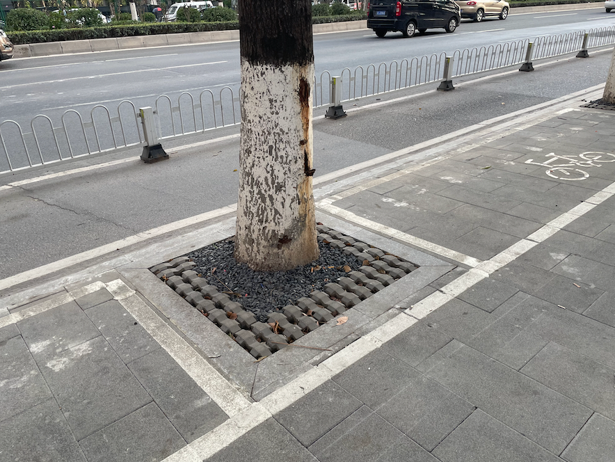 目前,该地铁口周边人行道已升级完毕。升级后的人行道与原来人行道相比在观感上有了明显变化,原来破损的路肩、铺装、人行盲道及花基都得到了全面修复,从原来的红色地砖替换成灰色的海绵地砖,整体看上去更加整洁、美观。