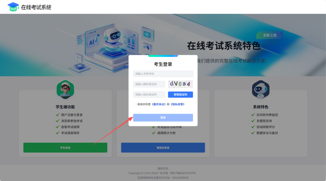 ③学生登录:点击【学生登录】,输入报名手机号,根据提示进入对应赛项的考试界面。
