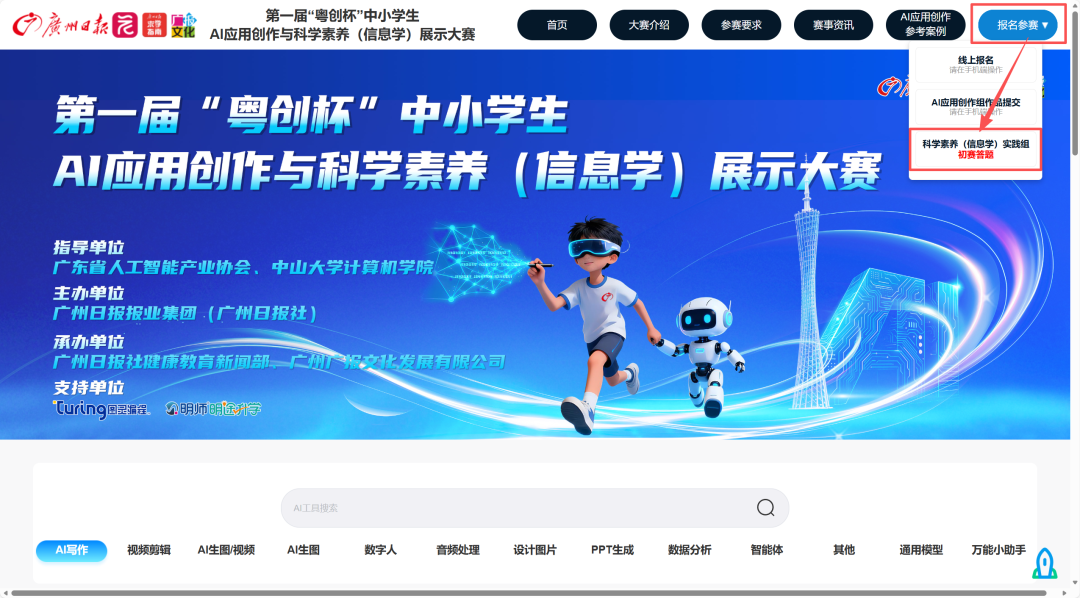 ②点击【报名参赛】-【科学素养(信息学)实践组】