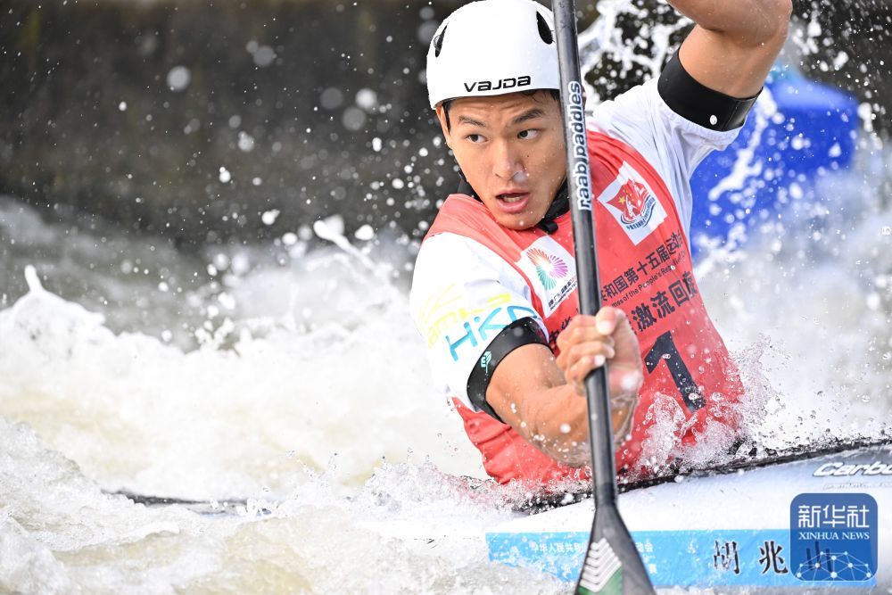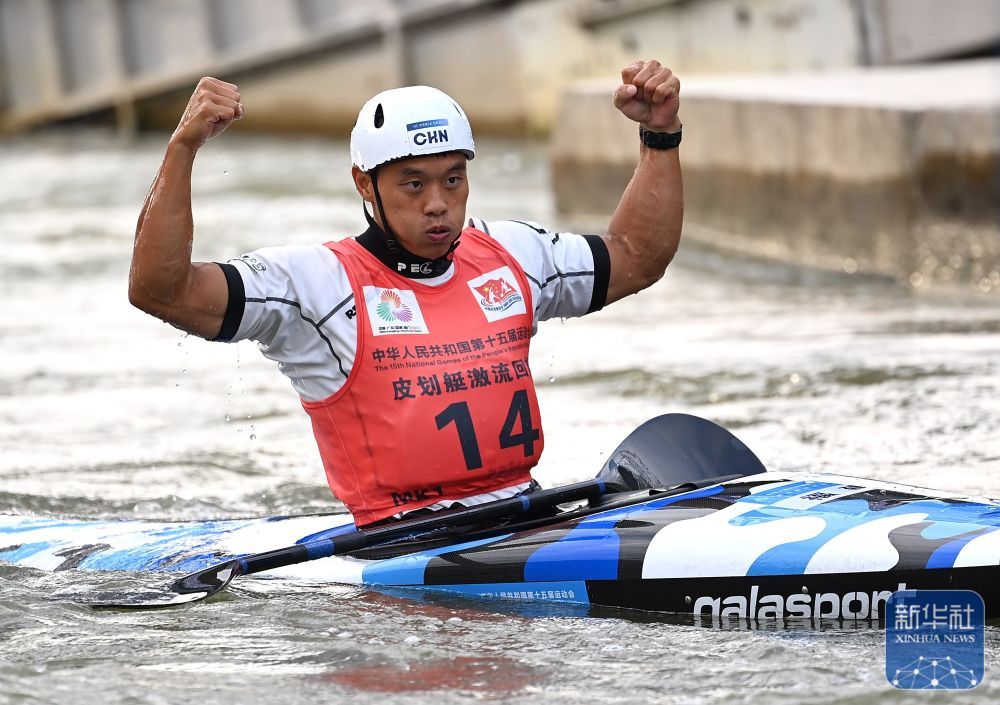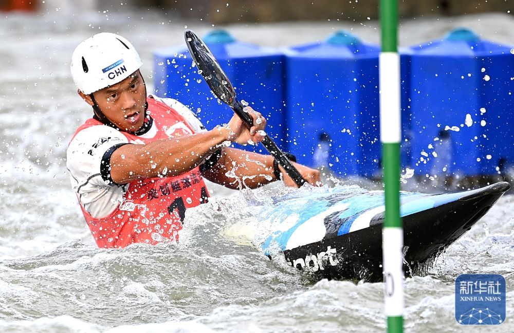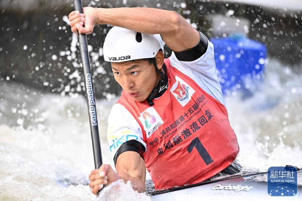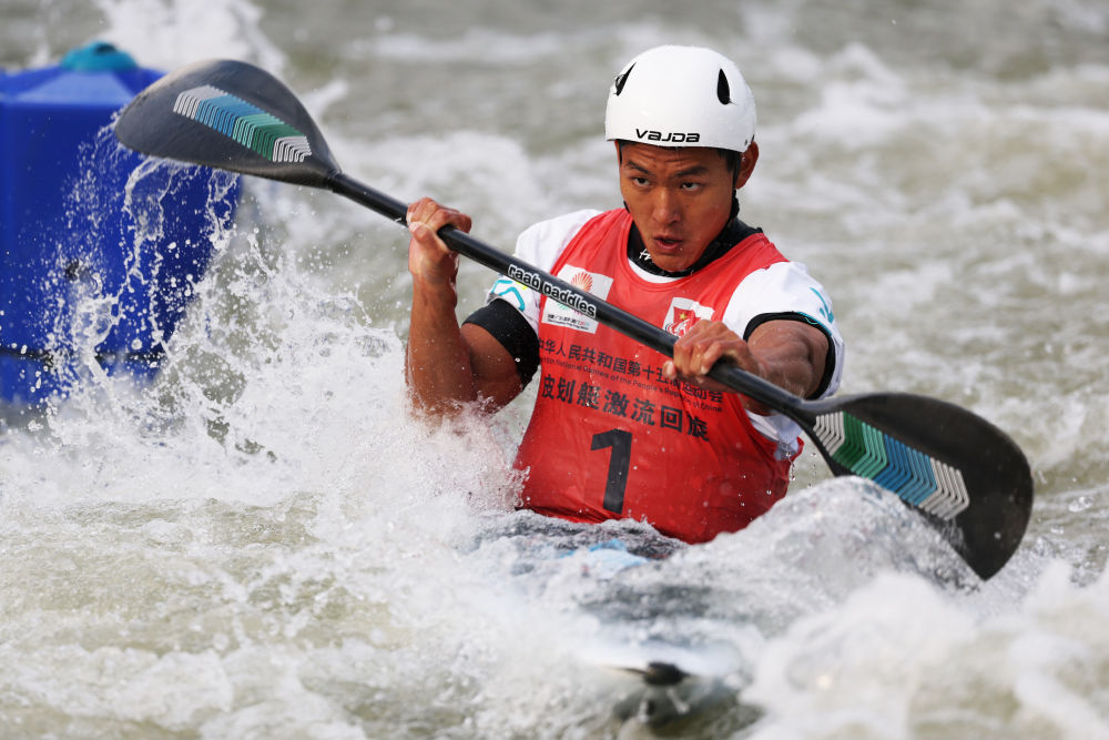 11月13日,第十五届全国运动会皮划艇激流回旋男子单人皮艇决赛在广州举行。