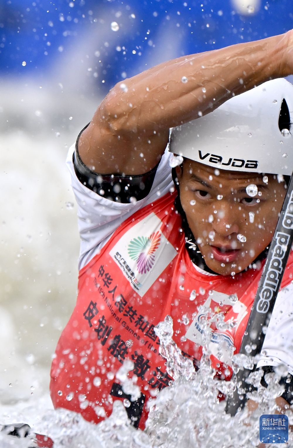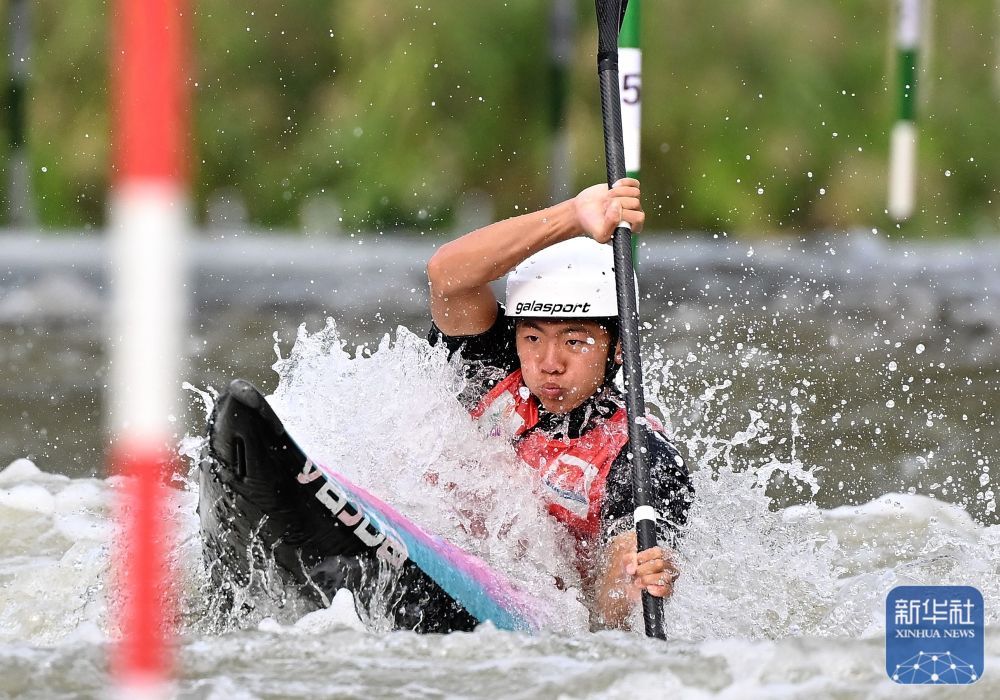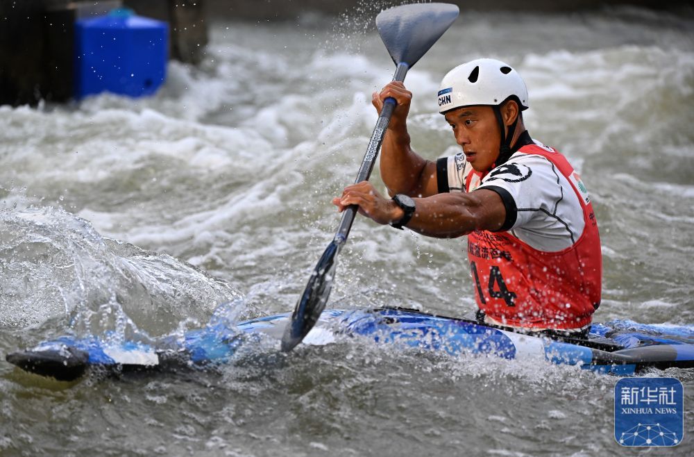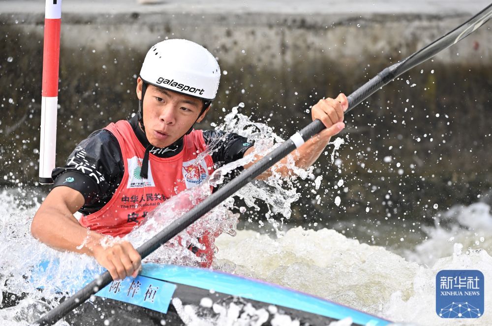 11月13日,第十五届全国运动会皮划艇激流回旋男子单人皮艇决赛在广州举行。
