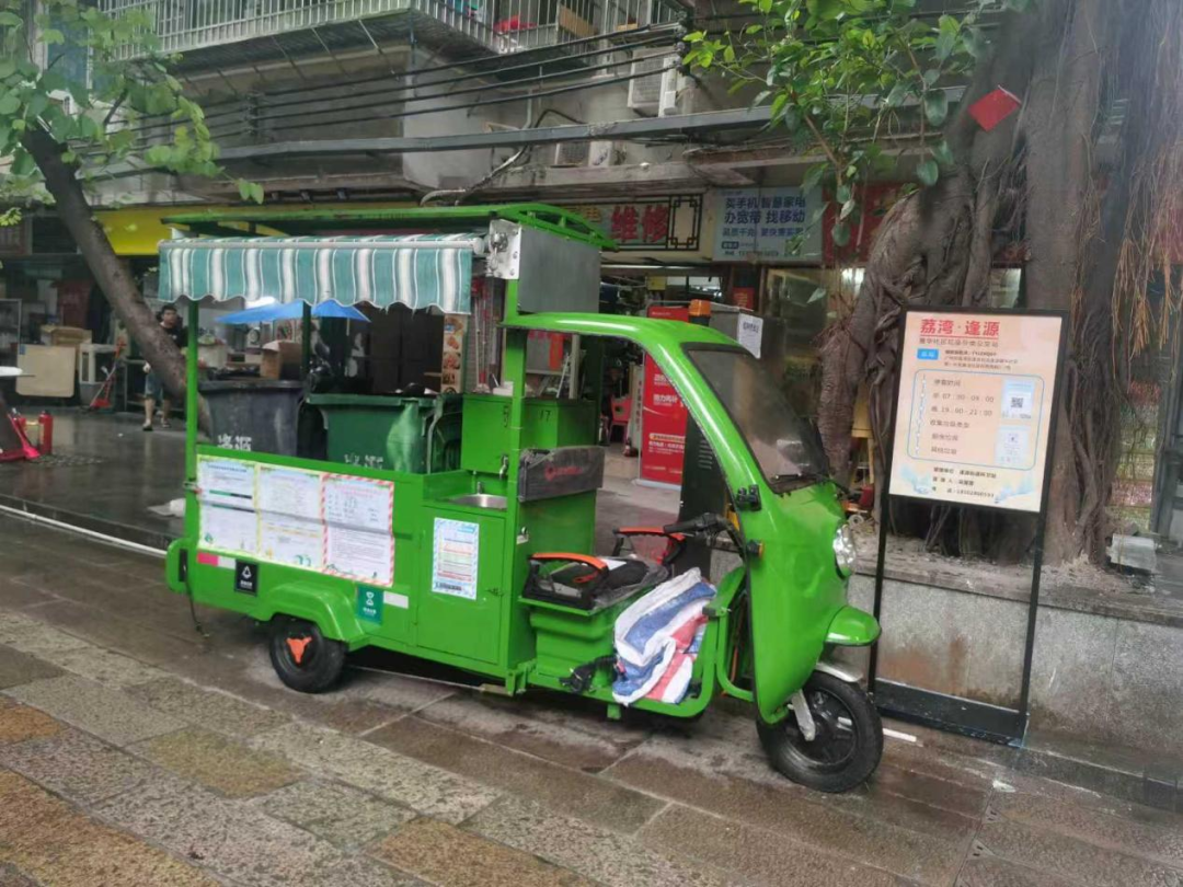 受“摇铃服务”启发,逢源街耀华社区创新推出移动式投放点,投放点由一辆移动收运车和一名车辆负责人构成,每天由专人接受居民投放生活垃圾。移动收运车辆配备了齐全的设施,包括洗手设施、遮雨设施及照明设施,除了会移动外,跟固定式的投放点基本无异。这样的移动式投放点既实现了垃圾分类投放的功能,方便居民投放生活垃圾,又不破坏老城区历史街区的风貌,还保障了内街巷的道路通畅,可谓一举多得。