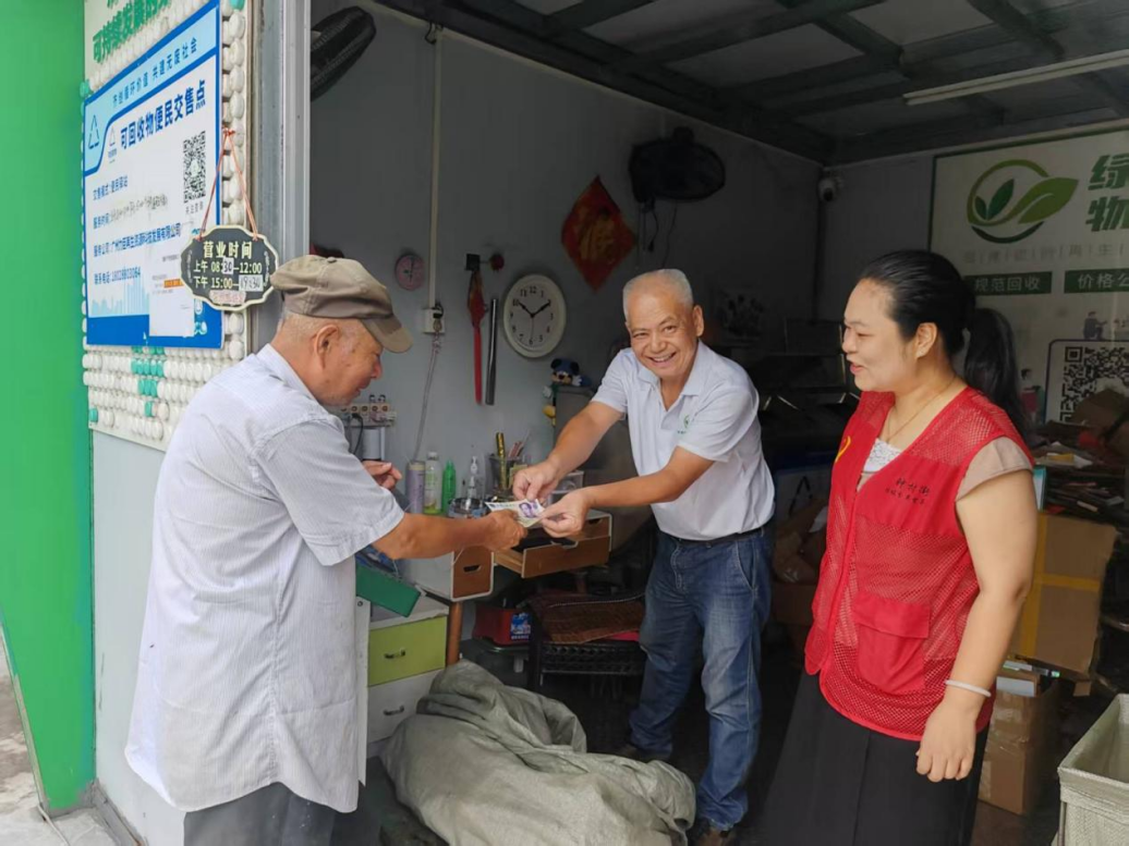 以往,祈福新村的可回收物处理是居民的“心头患”,交售点位少、价格不透明、搬运距离远等问题,导致居民主动参与回收的积极性不高。为破解祈福新村可回收物“变现难”问题,番禺区城市管理和综合执法局联合供销部门、钟村街道打通回收渠道的“最后一公里”,引入专业可回收物回收企业,并纳入供销监管体系。由企业负责在祈福新村布局3个可回收物交售点并长期驻场运营,由物业公司负责提供场地并在业主群发布消息,由社区负责定期组织垃圾分类主题宣传活动,引导祈福新村居民就近交售可回收物。