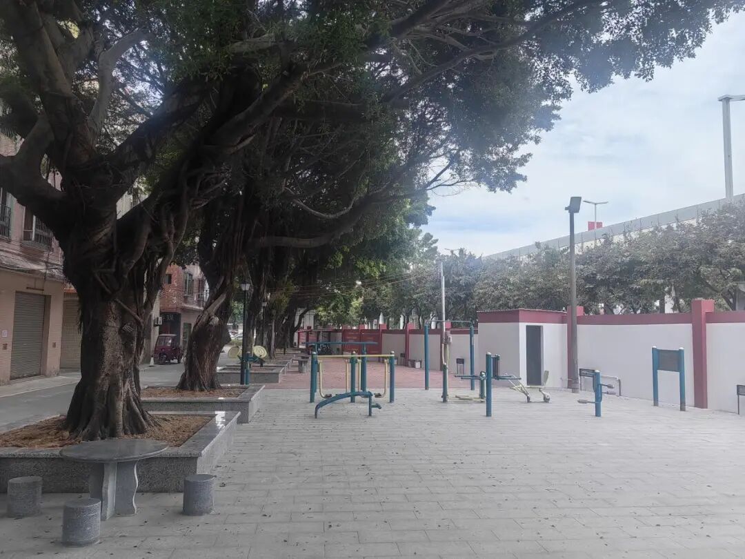 近日,位于东环街蔡二新村东街尽头的公园经过一番“焕新升级”,正式亮相。园内绿树环绕,康养游乐设施、休闲桌椅、乒乓球台、照明路灯等一应俱全,吸引了附近不少村民在此晨练、散步、聊天,尽享悠闲惬意的时光。