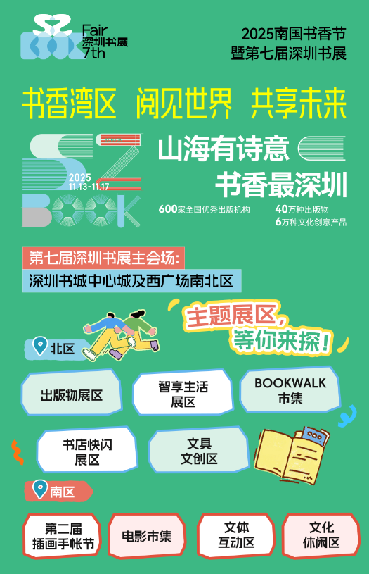 从纸墨书香到科技互动,从亲子时光到潮流社交,第七届深圳书展早已超越传统书展的边界,成为一场全民参与的文化嘉年华。11月13日至17日,不妨约上家人朋友,走进这场跨界融合的文化盛宴,在字里行间遇见美好,在多元体验中感受城市温度,让阅读成为这个秋天最难忘的记忆。