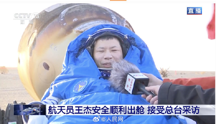 王杰说,时隔半年顺利返回地球,体验重力的感觉非常好。这次飞天之旅不仅是一次圆梦之旅,而且是一段充满挑战与艰辛的成长历程。我想对所有关心和支持我的人表示感谢,我深知这份成功与荣誉凝聚着全体航天人的努力与智慧,而且代表着国家在航天方面的巨大进步。