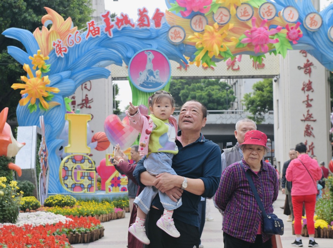 “棒棒菊”再度升级。广州文化公园风景园林施工高级工程师毛伟才介绍,去年菊会广受欢迎的“棒棒菊”今年再度升级,不仅品种与数量显著增多,更首次实现了多层造型,使其花冠层次更为丰富,色彩表现力也大幅提升。位于中心台的“彩色菊球”经过精心培育与布置,以饱满的花色与规整的球形构成壮丽的视觉焦点,蔚为壮观。而“高放菊”则以1.8米的挺拔身姿,继续其与市民“比高”的趣味互动,平添了许多生气。