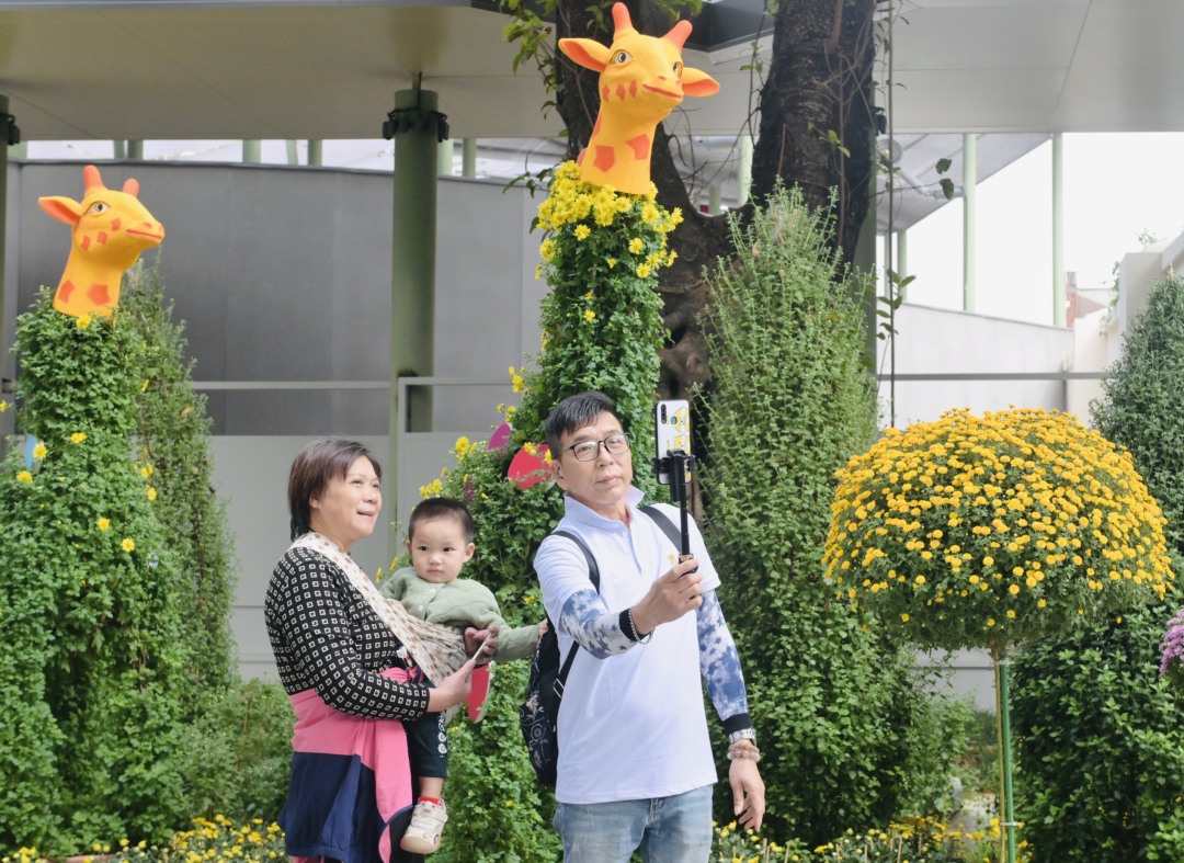 此外,展区内同步增设向日葵花海景观区与文创集市功能区,其中向日葵花海通过与西南广场景观的搭配组合,丰富秋季花卉观赏层次,文创集市则聚焦菊花文化衍生产品展示与销售,进一步拓展游客体验维度,实现“观赏+互动+消费”的多元体验闭环。
