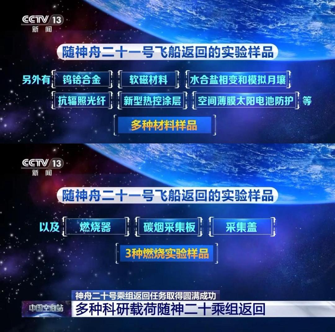 作为空间应用系统总体单位,中国科学院空间应用中心对返回的实验样品状态进行检查确认后,交付科学家开展后续研究。其余的材料类、燃烧类科学实验样品后续将随神舟二十一号飞船返回舱运抵北京。