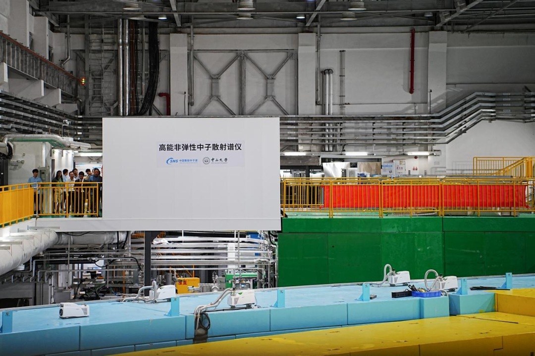 2017年,中山大学与中国科学院高能物理研究所签署战略合作协议,启动中子谱仪合作项目。经过两年的论证和预研,确定面向学术前沿和中国散裂中子源需求建设中国首台高能非弹性中子散射谱仪。谱仪自2019年正式启动建设。中山大学和散裂中子源科学中心共同组成谱仪建设团队,与专业技术组通力协作,攻克了一系列关键技术,包括自研费米斩波器、超大真空散射腔体等,终于在2023年1月12日成功在谱仪上输出中子。随后,谱仪进入带束调试阶段,并在年中初步获得了标准样品钒的声子谱和态密度。同年11月12日,谱仪正式揭牌,各模块的调试随即按下了加速键。最终,又经过两年多的调试,背景大幅降低,谱仪的各项指标均已达到国际领先水平。