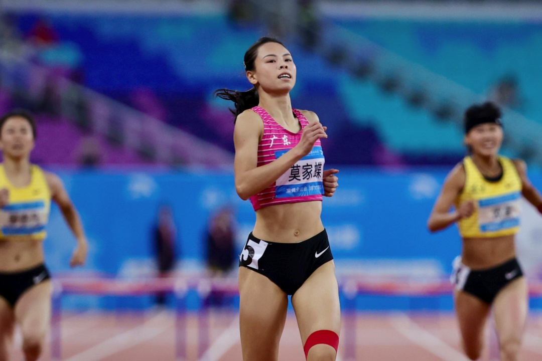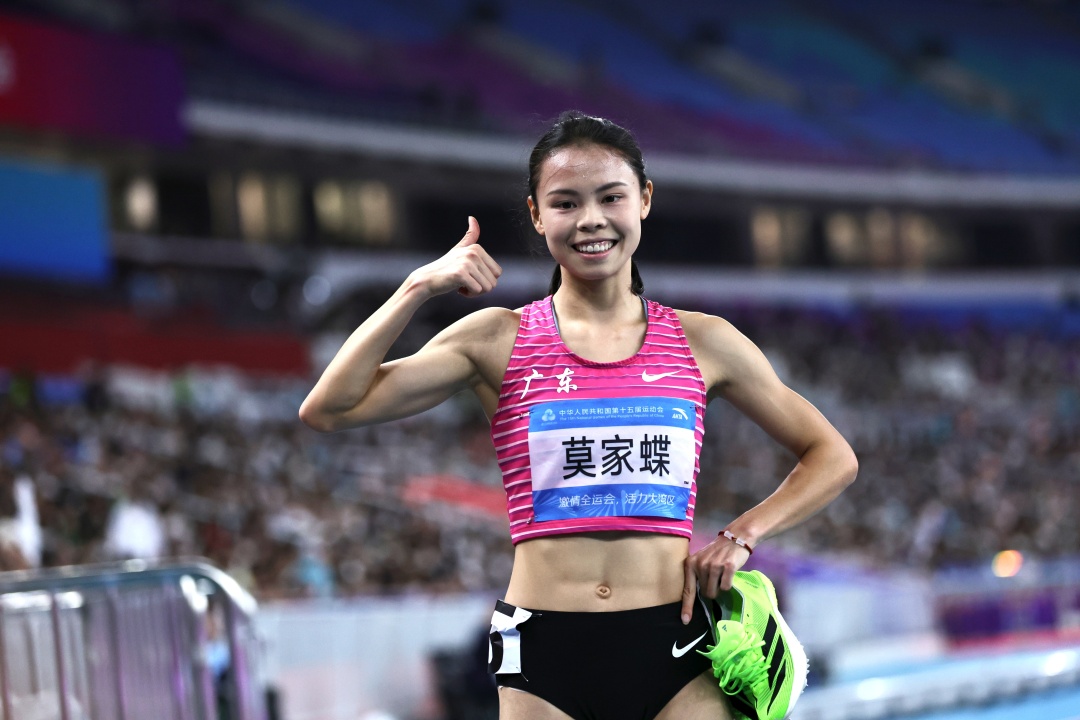 11月17日晚,十五运会田径女子400米栏决赛在广东奥体中心举行,广东队的莫家蝶跑出55秒19,成功卫冕该项目全运会金牌。另外一名广东队主力孔莹蓥以56秒10摘银。这也是莫家蝶在本届全运会上夺得的第二枚金牌。在15日晚上的4X100米混合接力项目,她与孔莹蓥等队友携手为广东队拿下田径项目的首金。