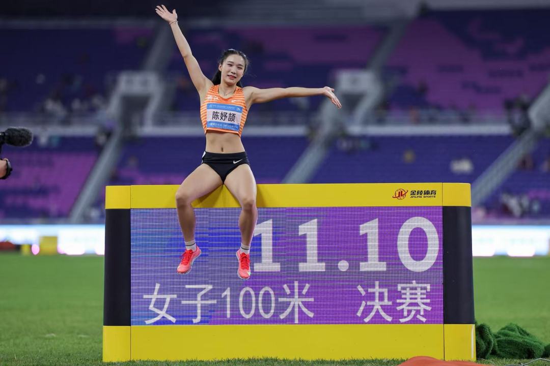 田径场上,“百米飞人大战”万众瞩目。结果,16岁的浙江选手陈妤颉以11秒10夺冠,成为全运会史上最年轻的女子百米冠军,其夺冠成绩也打破了尘封28年的亚洲青年纪录,接下来她还将冲击女子200米的金牌。男子100米决赛,湖北队的李泽洋以10.11秒夺冠,他坦言拿到第一很意外,接下来的目标肯定是奔着破10秒大关去的。除了陈妤颉的亚洲青年纪录,这两天十五运会田径赛场还打破了两项全国纪录,分别来自福建队龚德滨的男子400米栏和浙江队奚枭横的男子800米。