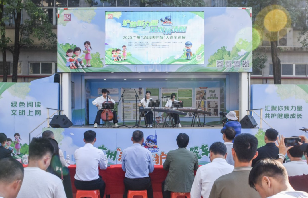 信息时报讯(记者 崔小远 宋佳媛)古筝的清雅与大提琴的醇厚交织成守护的旋律,广州华商学院飞跃器乐队的《浮光》表演奏响开场序章!11月16日,“护苗新力量 正版筑清朗”2025广州“清风侠护苗”大篷车巡展首场活动在增城区新塘镇启动。这辆满载版权知识、法治力量与社会关爱的“流动宣传站”,以沉浸式、接地气的创新形式,将“扫黄打非·护苗”的种子播撒在基层土壤,更以印刷行业源头治理为切口,为青少年构筑起一道看得见、摸得着的清朗文化防线。