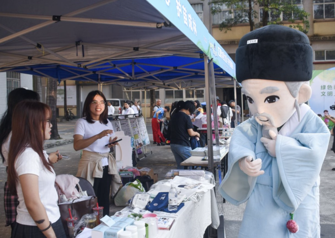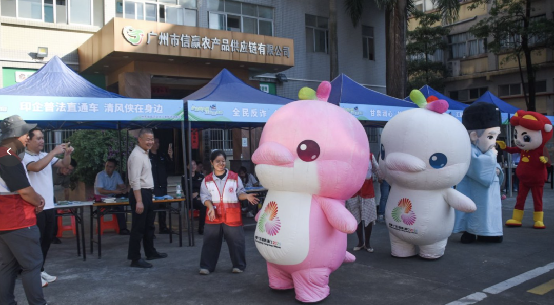 现场不仅有可爱的“清风侠”人偶,还邀请深受大家喜爱的十五运会吉祥物“喜洋洋”“乐融融”,以及“猪猪侠”“甘泉先生”等萌偶来到现场,与企业职工、市民群众热情互动。据悉,“甘泉先生”是广州城市职业学院联合增城区委宣传部、广州市社科联,以增城新塘的明代思想家、教育家、政治家湛若水为原型,打造的本地文化IP,既儒雅又萌趣的形象,充满亲和力。