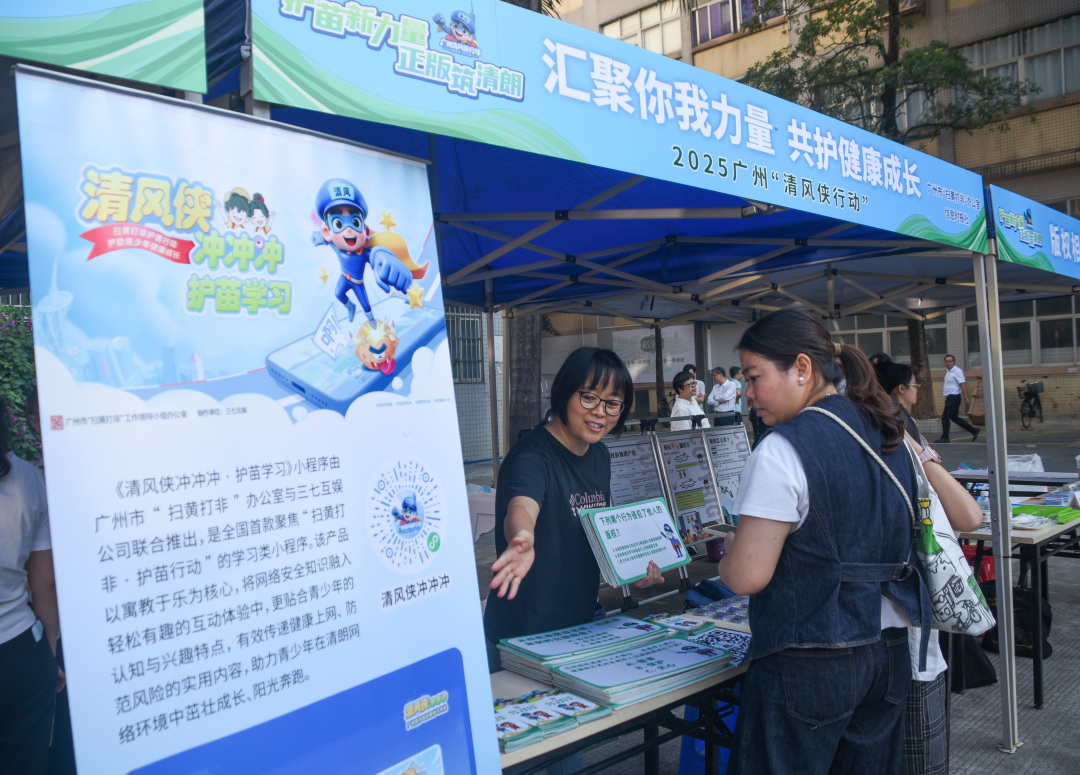 “护苗新力量 正版筑清朗”2025广州“清风侠护苗”大篷车巡展首场活动在增城区新塘镇启动。 信息时报记者 徐敏 摄