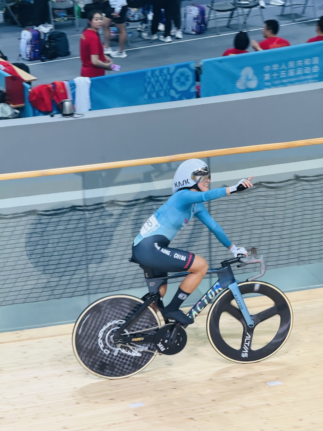 在11月17日完成的自行车场地赛女子全能比赛中,香港选手李思颖经过80圈艰苦拼搏,夺得金牌,这也是这位“女车神”本届全运会上获得的第三面金牌。
