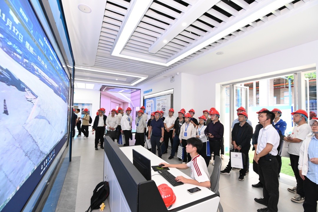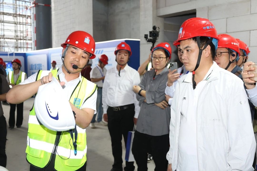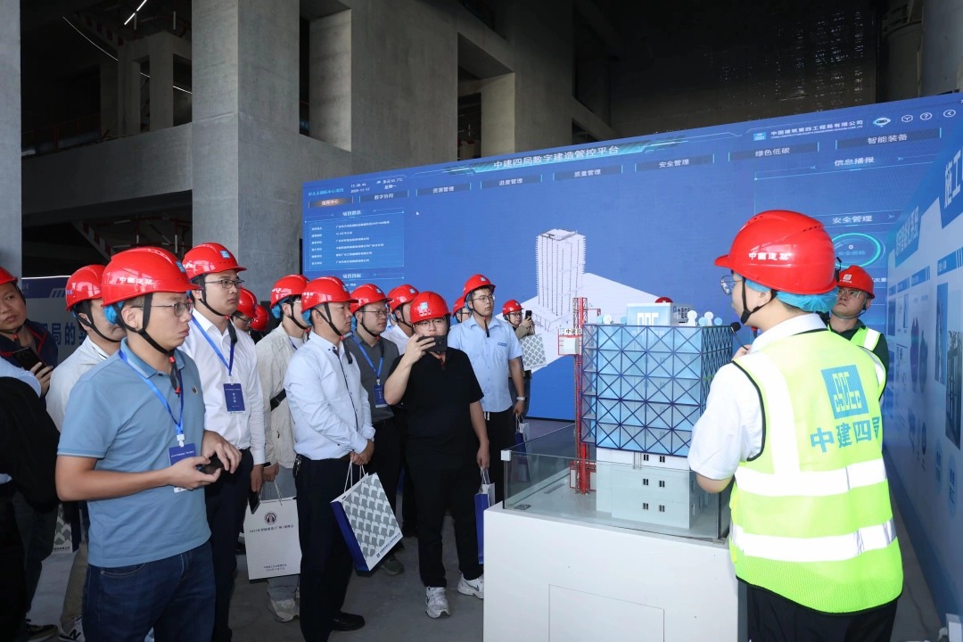 在项目观摩现场,两大项目尤为引人注目。其中,位于龙洞的中山大学肿瘤医学科学中心(天河院区)项目,依托中建四局DMP数字管理平台与智能建造平台,构建起覆盖进度、商务、质量、安全与碳排放等全场景的“智慧引擎”,实现智能分析决策与数字化高效管控。