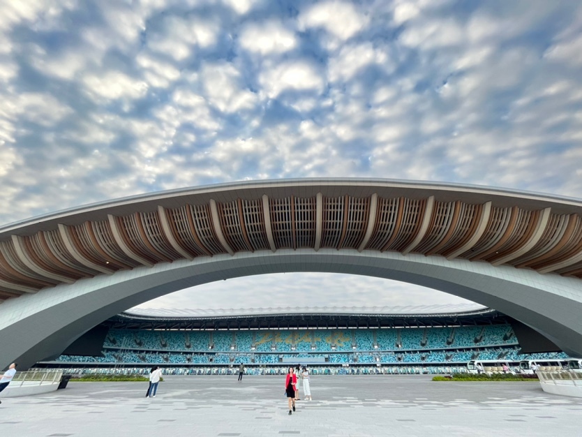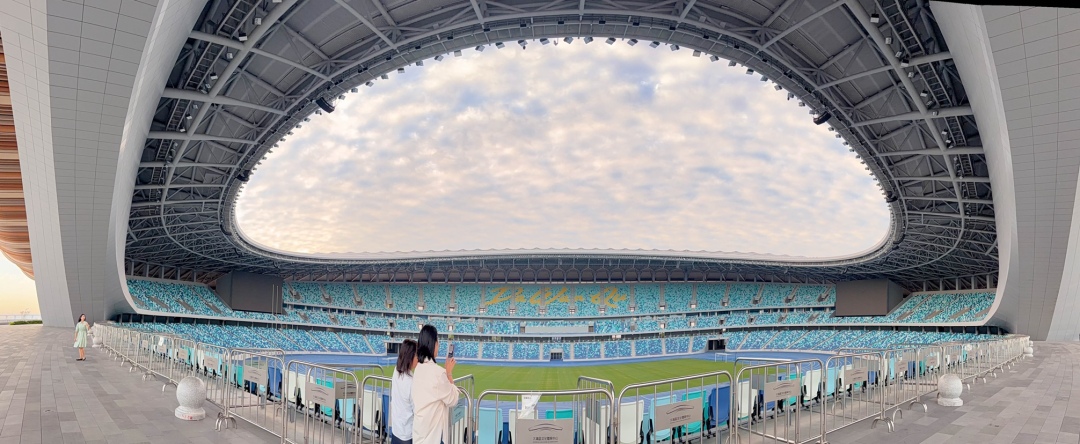 大湾区文体中心以“扇迎八方客,明珠耀九州”的理念矗立湾区几何中心,三座C字型场馆面朝大海,岭南建筑元素与现代化设计交融,内部145米宽的巨型视窗将海景与运动场地相连。依托通过深中通道、南中高速等交通网络,这里20分钟可达深圳宝安机场,50分钟连通珠海、澳门,湾区主要城市1小时通达,引起了文旅产业嘉宾的浓厚兴趣:“未来我们考虑将相关活动放到大湾区文体中心,吸引更多大湾区游客。”
