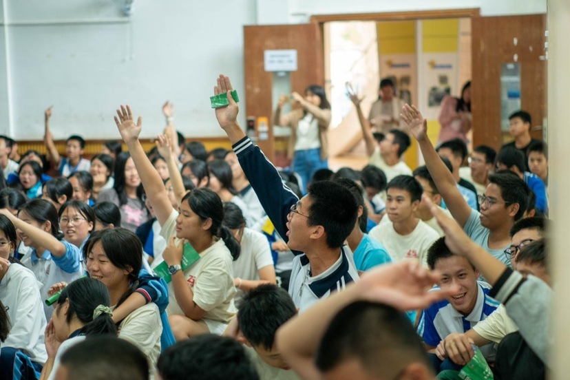 “过期药品属于什么垃圾?”“剩饭、剩菜投哪个桶?”互动课堂玩转环保,赖老师化身“环保出题官”,开启“垃圾分类大闯关”。台下新生刷刷举手,并争相喊出答案:“其他垃圾!”“厨余垃圾!”抢答声、掌声、欢呼声交织成一片。
