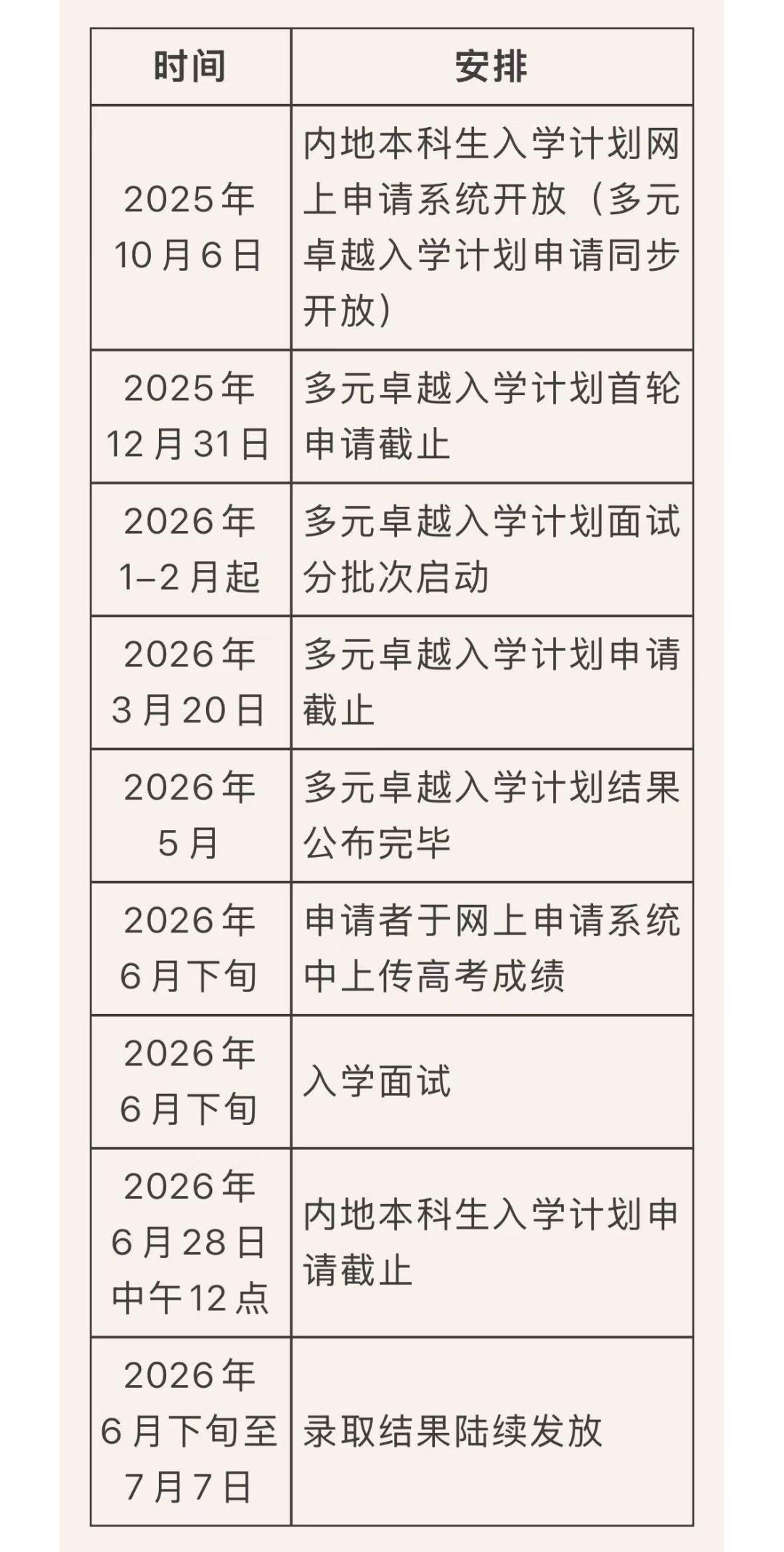 注:如申请者于高考前未能参加任何轮次的多元卓越入学面试,则视为自动放弃此计划资格,且无法获得入学优惠。