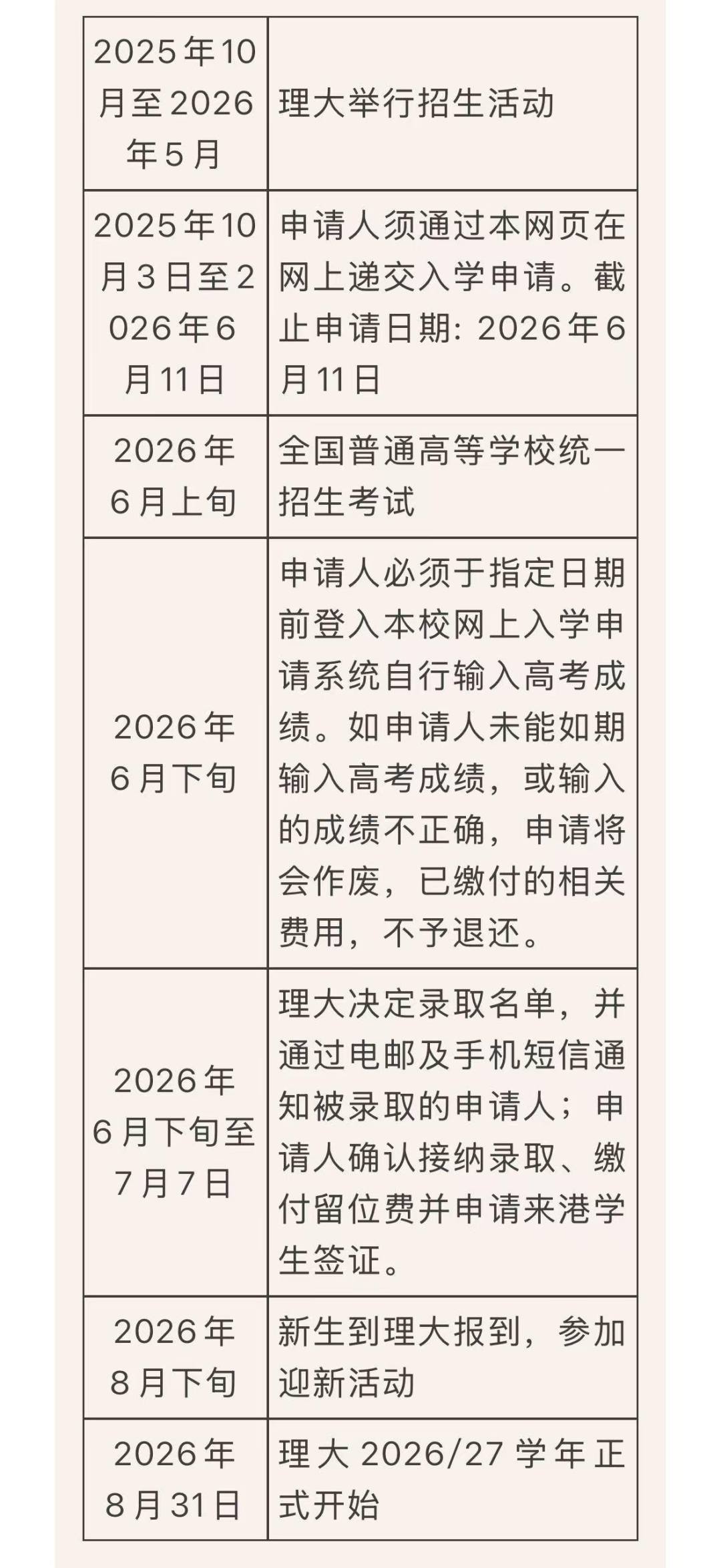 注:以上日期将根据实际情况修订,考生须适时留意澳门理工大学网页获取最新入学资讯。