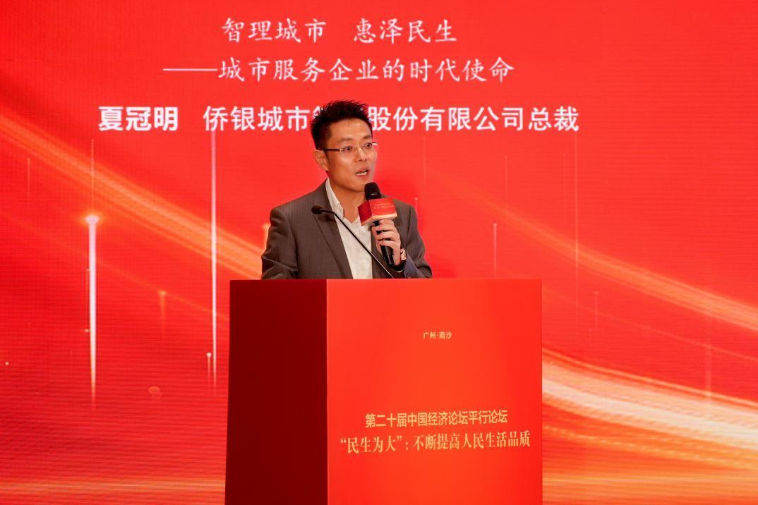 11月18日,第二十届中国经济论坛在广州南沙举行。作为头部城市运营服务行业的唯一企业家代表侨银股份总裁夏冠明受邀参加,并在当天进行的平行论坛“民生为大:不断提高人民生活品质”发表主题演讲。