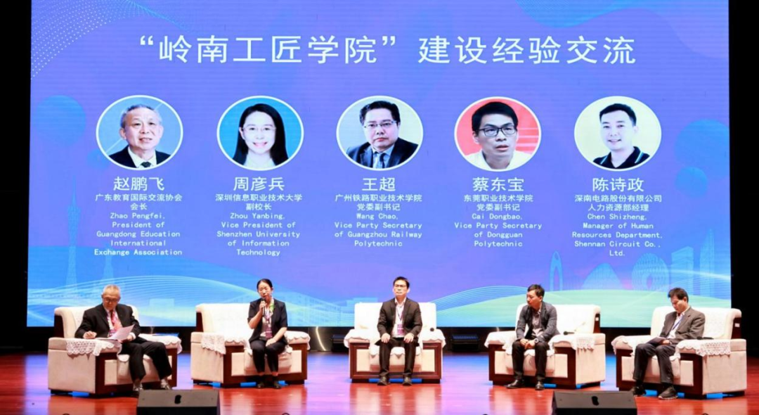 活动还设置了圆桌论坛。来自深圳信息职业技术大学、东莞职业技术学院等高校和企业的领导和代表,分别围绕“‘岭南工匠学院’建设经验交流”“中外合作办学经验交流”两大主题展开深度交流与分享,为职业教育高质量发展赋能,为国际合作创新献智献策。