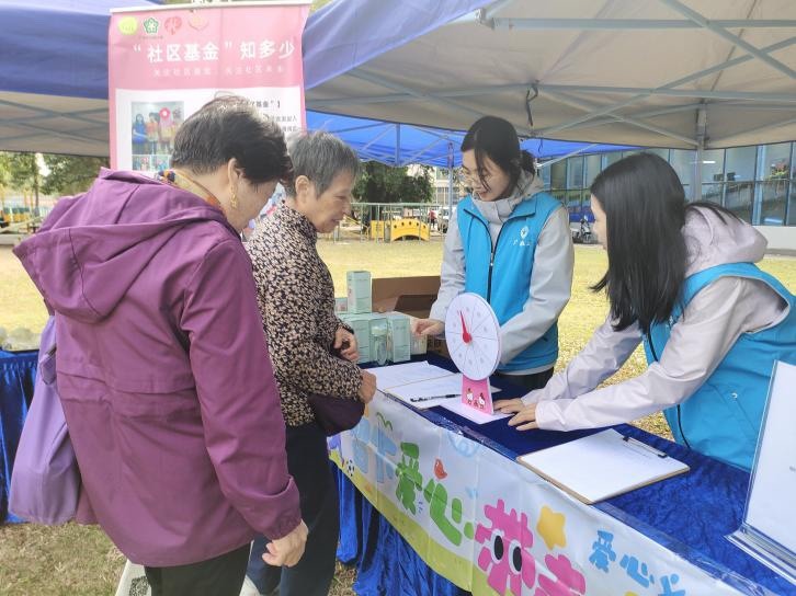 为了让慈善理念深入人心,活动特别设置了“嘉年华游戏互动区”。南村西片社工及青年志愿者们通过易拉宝向社区居民讲解社区基金的运作与过往的服务内容等。在游戏区,“公益知识有奖问答”“一老一少拼图挑战”、公益套圈等趣味互动,巧妙地将慈善、未成年人保护、“一老一少”关爱等知识融入其中,让社区居民在欢声笑语中收获了知识与纪念品。