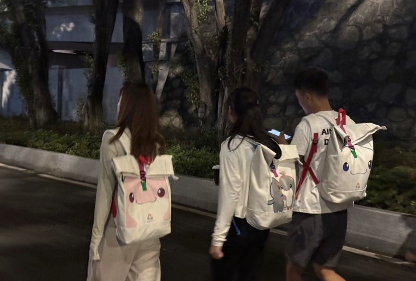 在视觉上,他决定将中华白海豚的脸部放大。“背包是背在身后的,真正看到它的是身后的人。”曾振伟抓住了这一点,把白海豚的两只眼睛做成视觉焦点,让人与图案之间产生即时的对视与情感共鸣:被看见、被回应,进而萌生“想拥有它”的冲动。