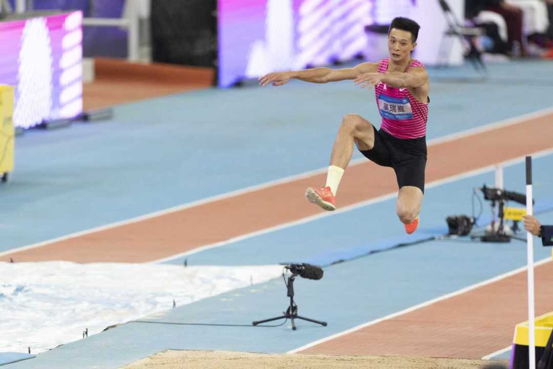 在今晚的十五运会男子三级跳远决赛中,吴瑞庭首跳便跳出16米81的优异成绩,凭借这一跳稳稳锁定冠军,成功卫冕全运金牌。