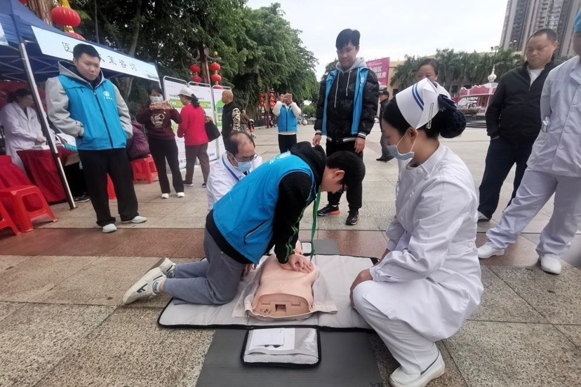 在体验区,为群众提供了众多的健康服务如中医传统疗法、穴位贴敷、颊针治疗等项目,以及免费进行骨密度检查、肺功能检查、血压血糖测量等项目。在教学示范区,医务人员同时开展了心肺复苏现场教学和居家急救技能学习培训,让群众在享受到优质医疗服务的同时,还能学到相关医学专业知识和急救技能。