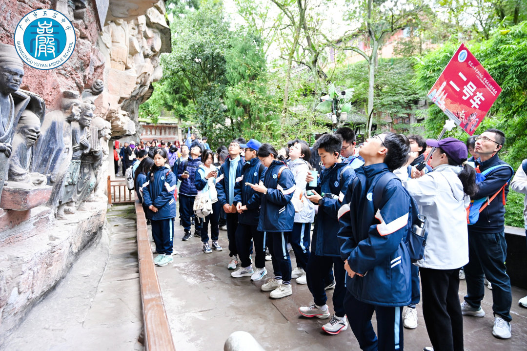 广州市玉岩中学高一年级在重庆参观大足石刻,感受宋代雕塑之美。