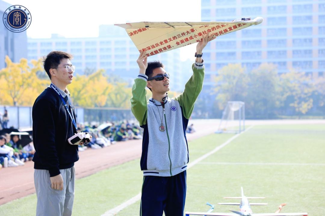 广州实验中学高一学生在南京航空航天大学学长指导下进行航模飞行。