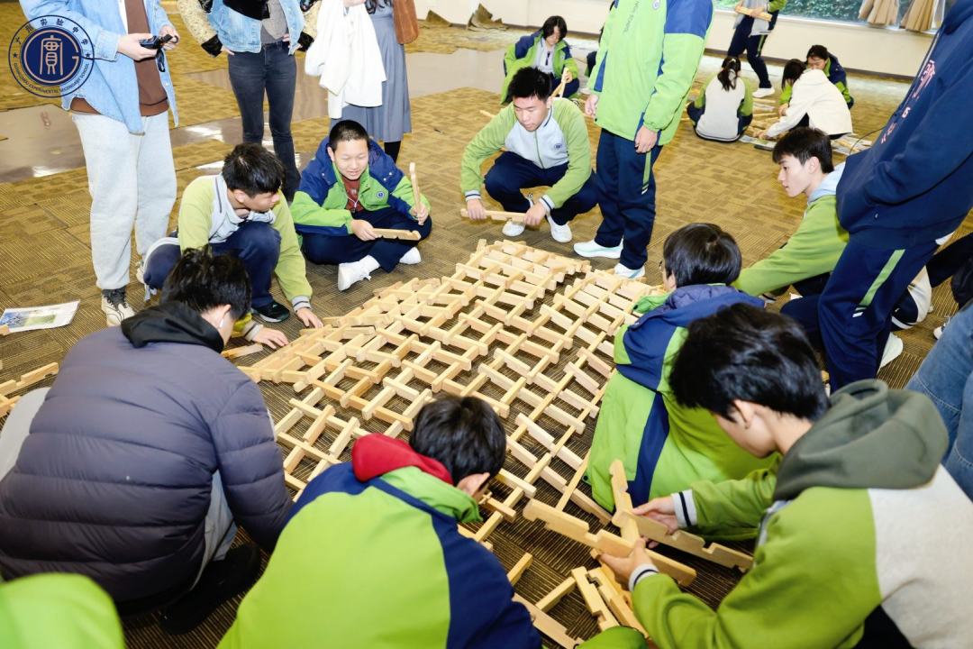广州实验中学高一学生在牛首山以小组为单位搭建榫卯穹。(受访单位供图)
