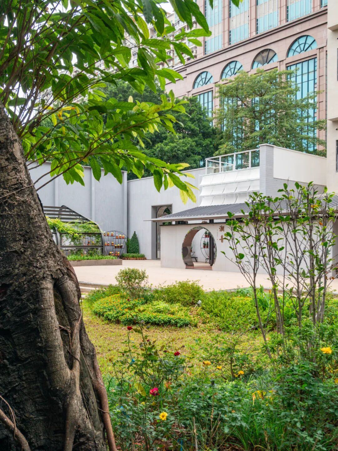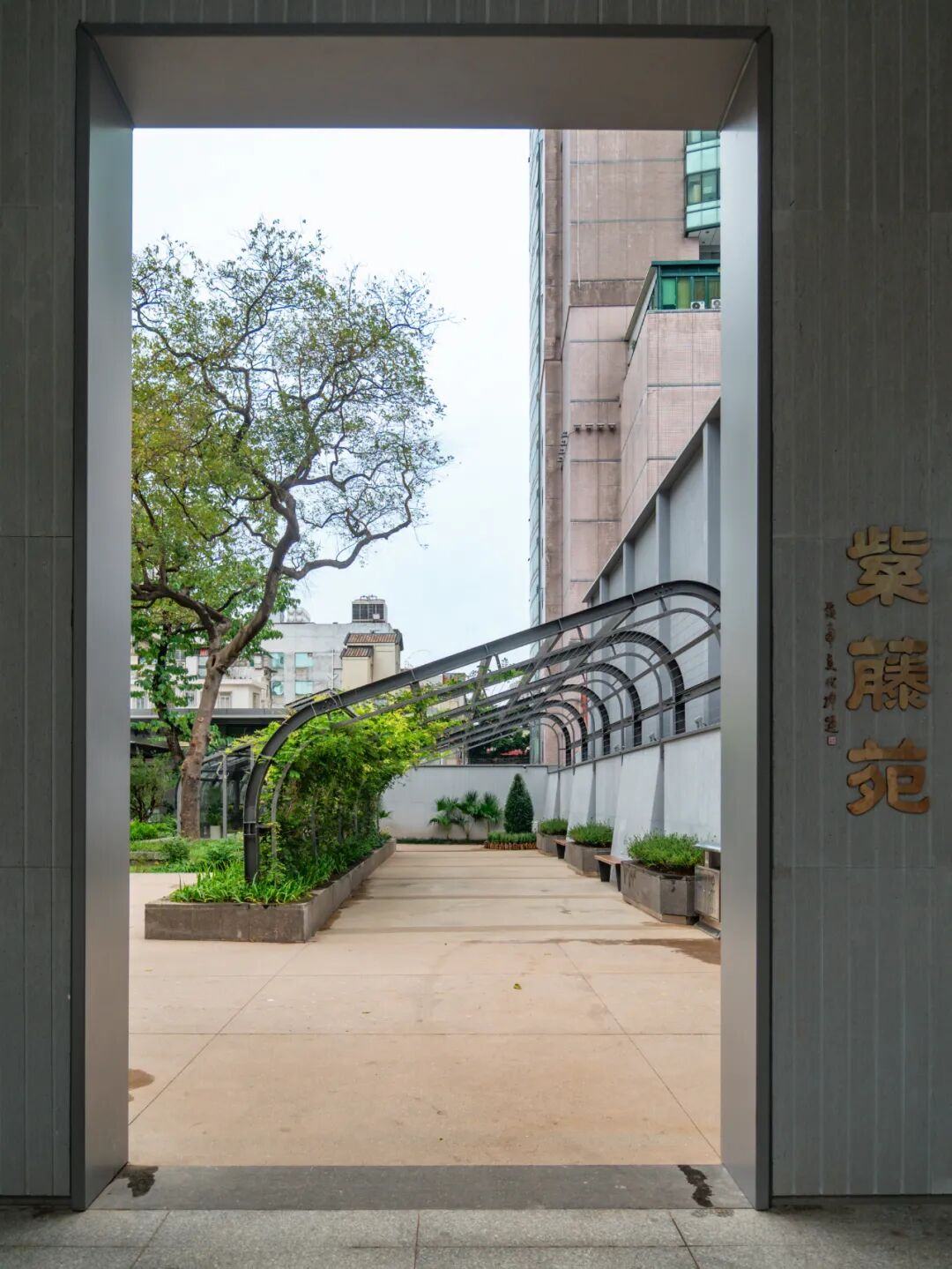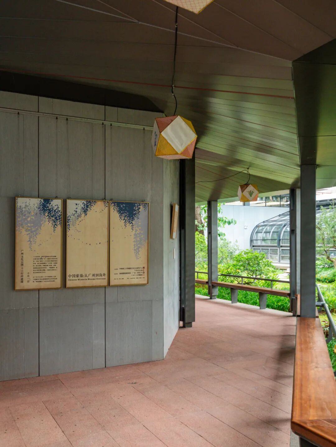 园内的“紫藤苑”不仅种植了适应岭南气候的紫藤品种,还特别选取了月季、山茶、君子兰等当年从中国传播到世界各地的植物,并用镶嵌贝壳的铺地再现了曾经的珠江岸线意境。