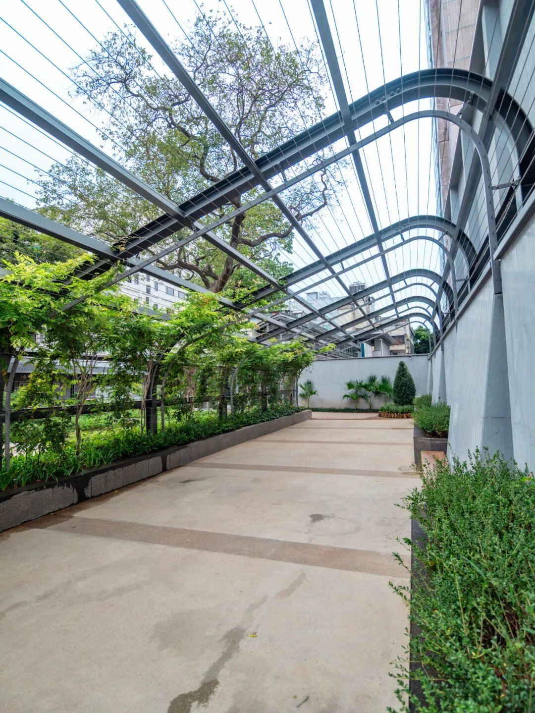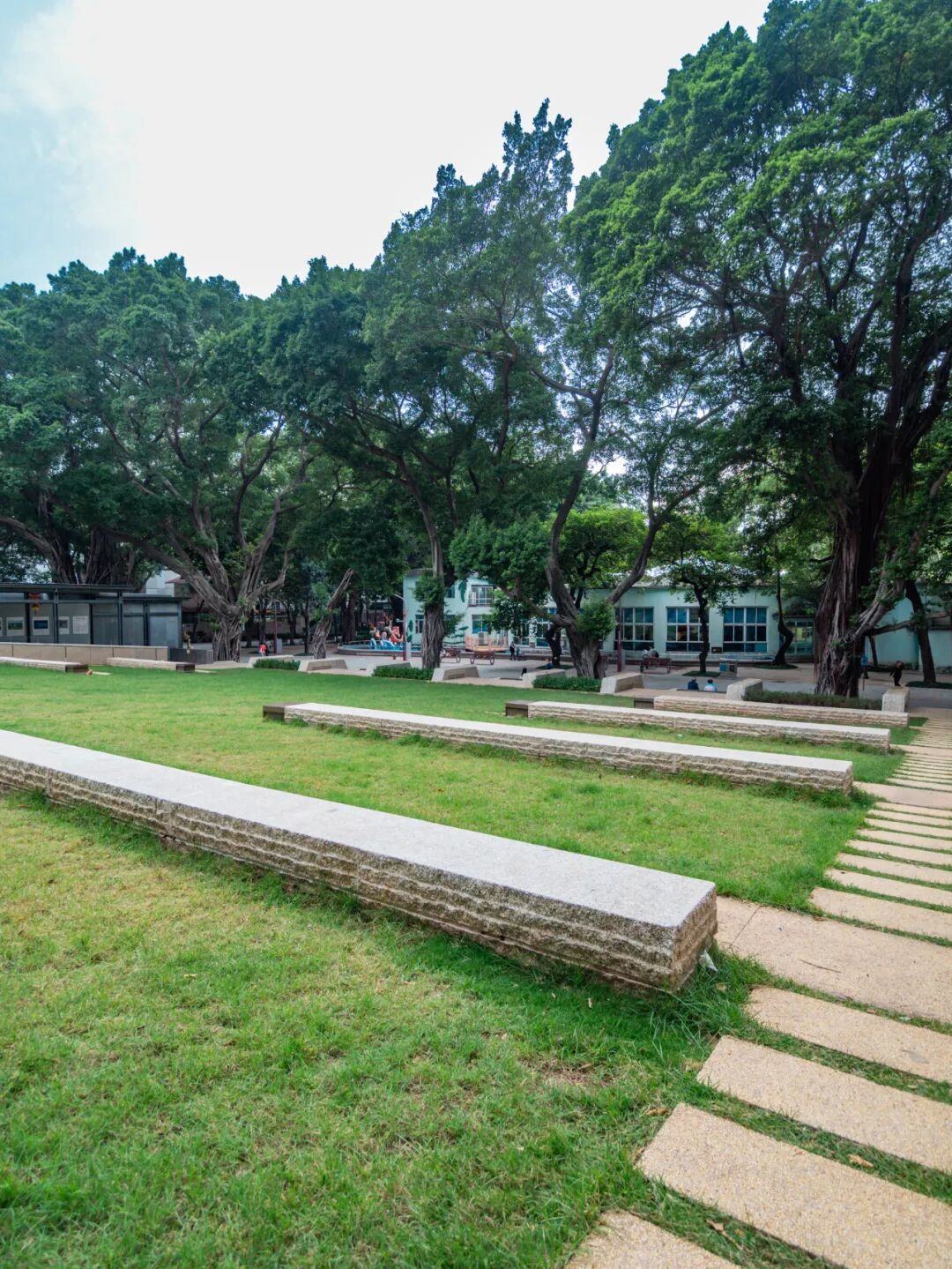 从这里还可以从不同角度欣赏到毗邻的广州“001号”历史建筑——水产馆,设计团队特意利用高差设置草坡,让游人能从不同高度欣赏这座珍贵历史建筑。