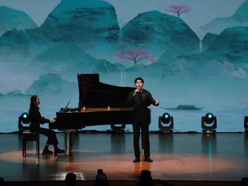 整场展演共有19个节目,分为“家国记忆·同仇敌忾”“客韵流芳·四海一家”“传承创新·时代新声”“同心筑梦·爱我中华”四个篇章。一首《南侨机工恩难忘》热烈开场,马来西亚著名客家山歌传承人周玡君与星海音乐学院民族声乐系教授贾双辉用动情的歌声带领大家共同追忆南洋华侨机工用血肉筑就滇缅公路“抗战生命线”的壮举。马来西亚著名慈善教育家李雲桢通过歌曲《岁月》《家乡有座风雨桥》深情诉说着对故土的眷恋与闯荡的豪情;中国香港著名慈善家、香港慈善总会主席郑苏薇倾情演唱《山歌唱出好兆头》,以欢快旋律描绘“三月三”“六月六”的节日盛景;华南师范大学音乐学院余虹教授携《客家乡亲》这首新派客家山歌佳作,深情表达客家人对家乡的眷恋和四海为家不忘本的乡亲情怀……