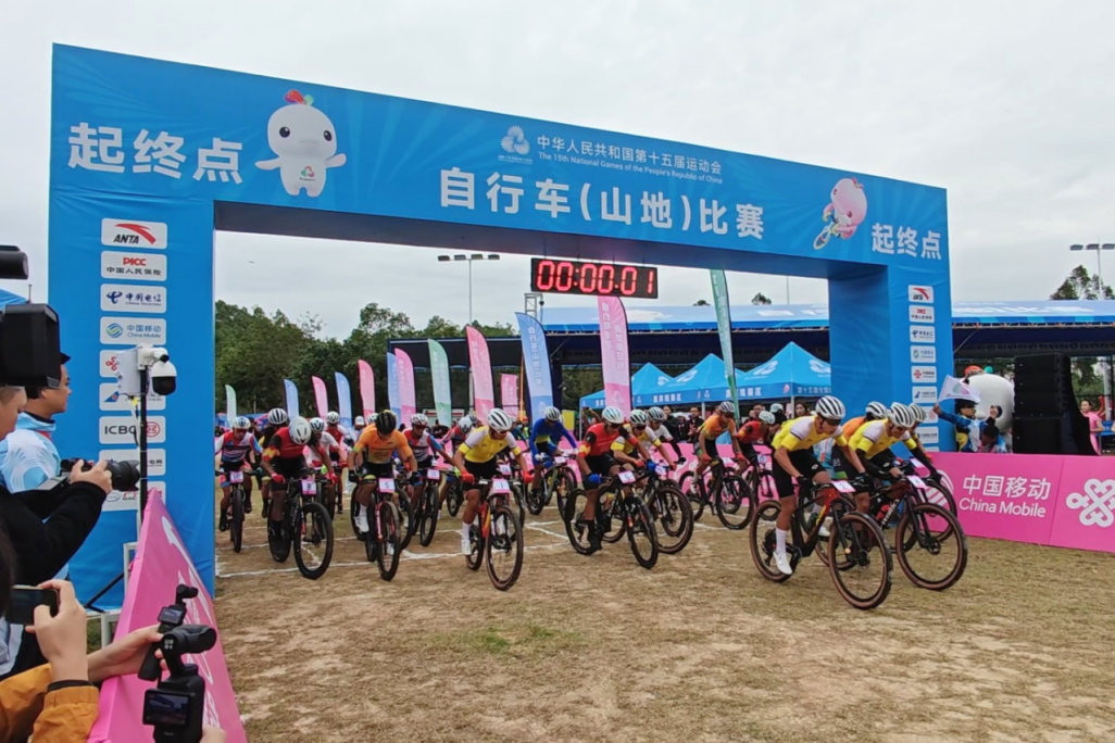 第十五届全国运动会自行车(山地)比赛鸣枪出发 李锦洪摄