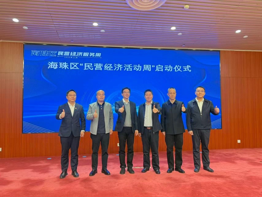 11月20日,“2025年海珠区民营经济服务周”活动启动,现场交出专精特新与“特色产业集群”双突破的亮眼成绩单。活动期间,海珠区正式推出覆盖企业全周期的“民营经济八大举措”,并携手广州农商银行发布华南首款集群贷产品,配套百亿元额度,以“政策+金融”组合拳为民营企业注入强劲发展新动能。