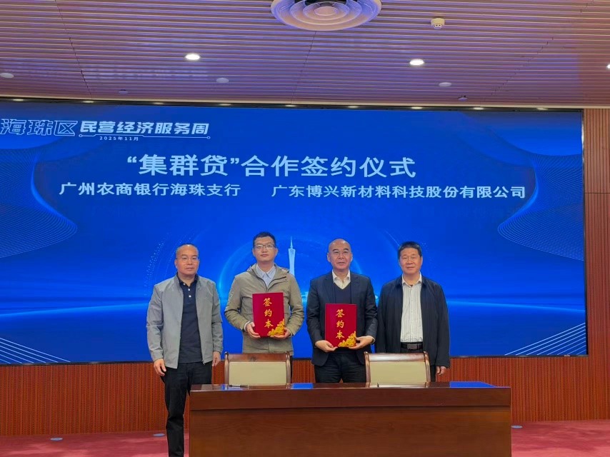在金融赋能方面,不断深化推进“益企共赢计划”,市区联动支持广州农商银行重磅发布华南地区首个面向“中小企业特色产业集群”的金融产品——“集群贷”,配套100亿元专项融资额度。该产品创新信用额度核定模型,将研发经费、数字化应用水平等纳入核算,提供最高5000万元信用快批额度、最低2.8%利率、最长5年期限的中长期贷款,实行“3天审结、5天放款”的高效审批机制,精准破解智能制造企业“两高一轻”融资痛点。在活动现场,海珠区科工商信局与广州农商银行签署了战略合作协议,广州农商银行海珠支行与博兴新材料、百景信息、营客信息等企业达成首批意向性授信。