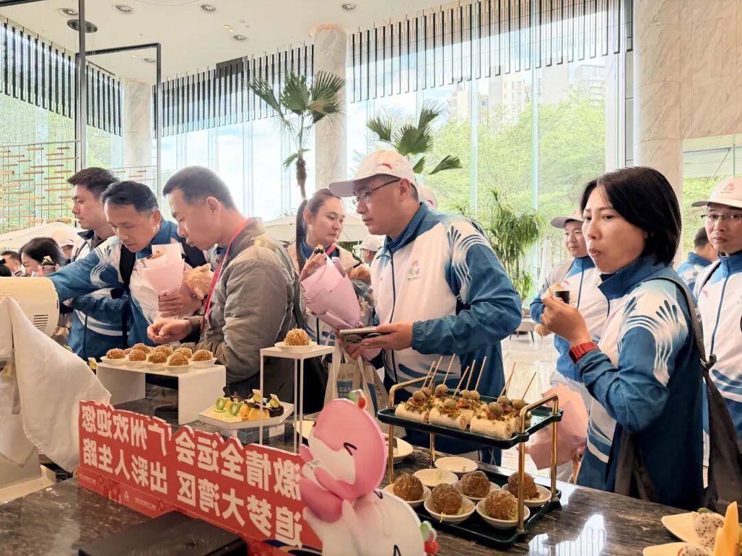 技术官员代表表示,保障团队非常用心,在他们入住时保障团队专门在大堂提供了南沙特色欢迎赠饮,定制了客房欢迎礼遇和赠送了南沙街道国际街区文创产品。赛会期间,根据技术官员的需求,保障团队及时响应,精心准备各式各样的广州特色菜式(烧乳猪、肠粉、烧麦点心等)。