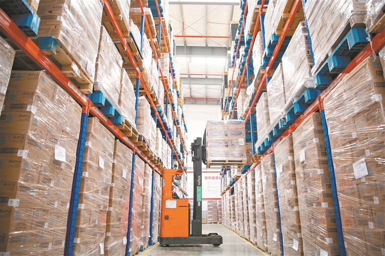 广州南沙一家跨境电商企业的分拨中心仓。(资料图片)