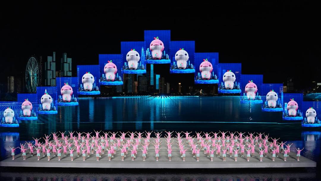 全运会闭幕式的海上舞台上